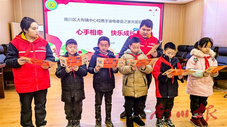 近日,在大有镇中心校携手渝电春苗之家关爱留守儿童的活动上,区供电公司工作人员给孩子们发放“安全用电”宣传手册,并带领大家一起学习安全用电知识。