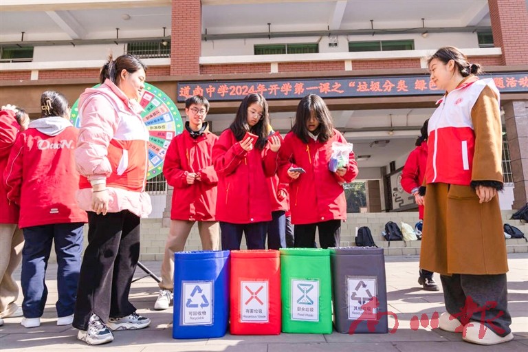 本报讯(通讯员 张延 李维)2月18日,全区中小学春季开学报名,学生陆续返校开始新一年的学习生活。区城市管理局、区教委在道南中学开展了“垃圾分类·绿色生活”主题活动,通过多种形式的趣味游戏和宣讲方式,给重返校园的学生们上了一堂特别的开学第一课。