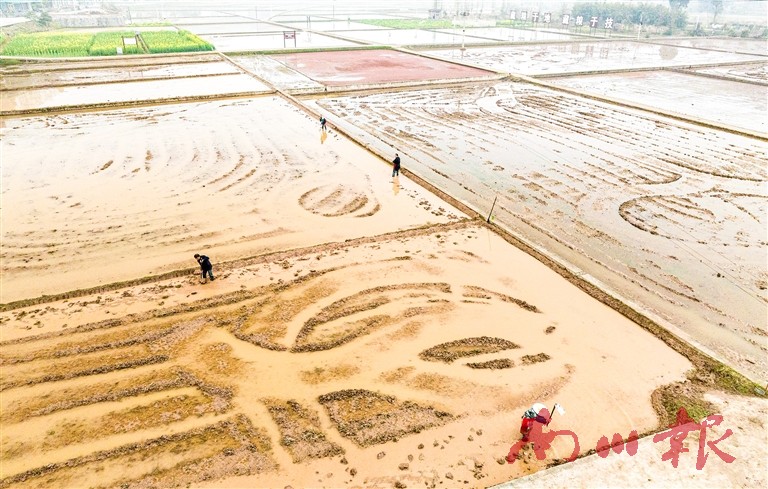 图①:3月9日,大观镇铁桥村村民在田里耙田,做好准备迎接栽秧季。