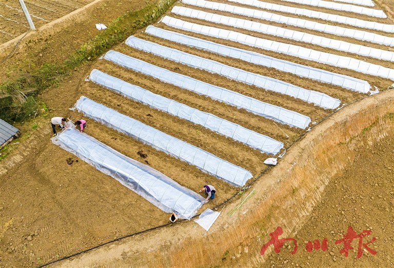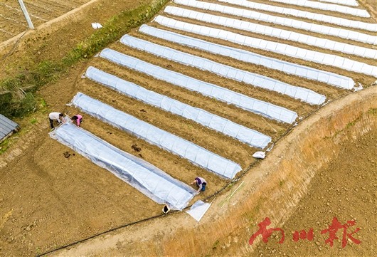 图②:3月9日,福寿镇农胜村村民正在标准化农田里给土地覆膜保墒,确保春耕春播生产顺利进行。
