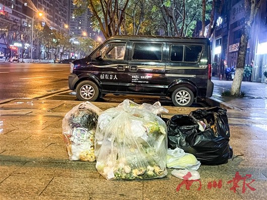 近日,来游路段部分商家趁夜色将垃圾随意堆放在路边,影响城市形象。本报记者 摄