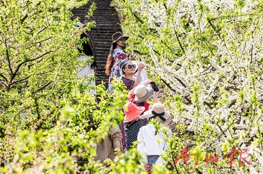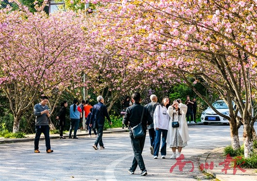 如梦似幻的樱花,散发出迷人的清香,满枝丫的花朵压弯了枝条,仿佛在向人们点头致意,让游客为之驻足,不忍离去。位于大观镇金龙村的樱花大道,烂漫的樱花盛开,薄薄的阳光斜射在翩翩静美的粉红与素白的浪漫中,大片大片的花瓣织成一场让人屏息流连的樱花雨。漫步于樱花簇拥的小径,每一步都踏着花瓣的轻语,每一眼都是春天的温柔。