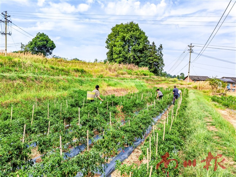 图③:辣椒是木凉镇的主导产业之一,村民在地里采摘辣椒。记者 王婷婷 摄