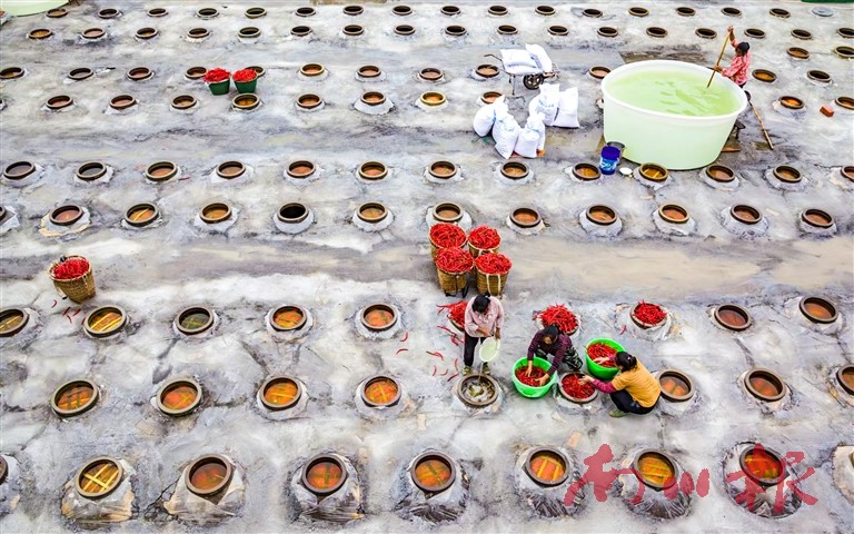 “我们的泡椒选用新鲜的二荆条,不使用添加剂,经过6~12个月的自然发酵,不仅肉质饱满、口感脆,而且酱香味十足。”10月15日,位于石溪镇南茶村7组的泡菜加工厂里,业主何国永戴着手套,从泡菜坛里抓起已经腌制一年的泡椒,经过清洗脱盐后,打好包准备出货。
