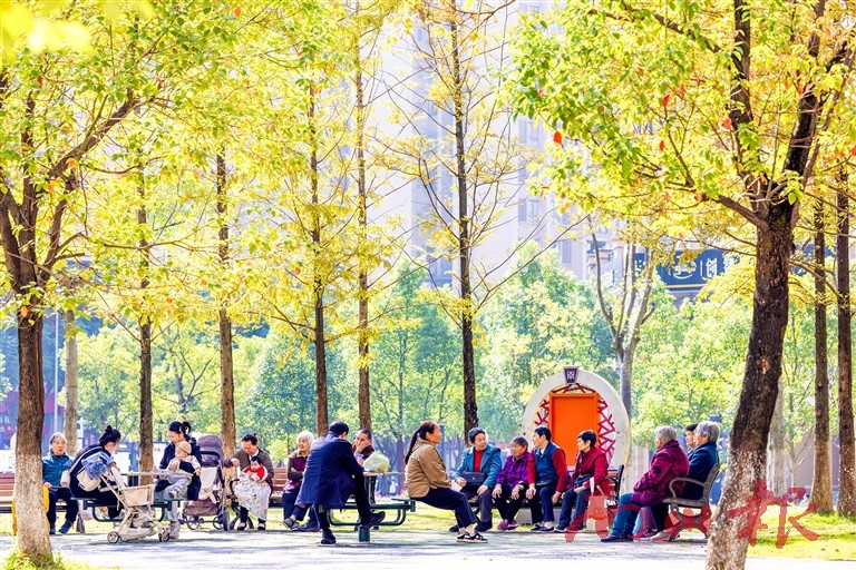 近日,市民在城区消防主题公园里休憩聊天,享受悠闲生活。