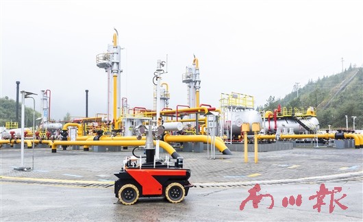 近日,中石化重庆页岩气有限公司南川常压页岩气田脱水站成功试运行北斗智能防爆巡检机器人。据了解,该机器人具备自动定期巡检、数据采集分析及预警等功能,能够提高巡检作业效率和精度,解决危险区域巡检难题,降低员工劳动强度。