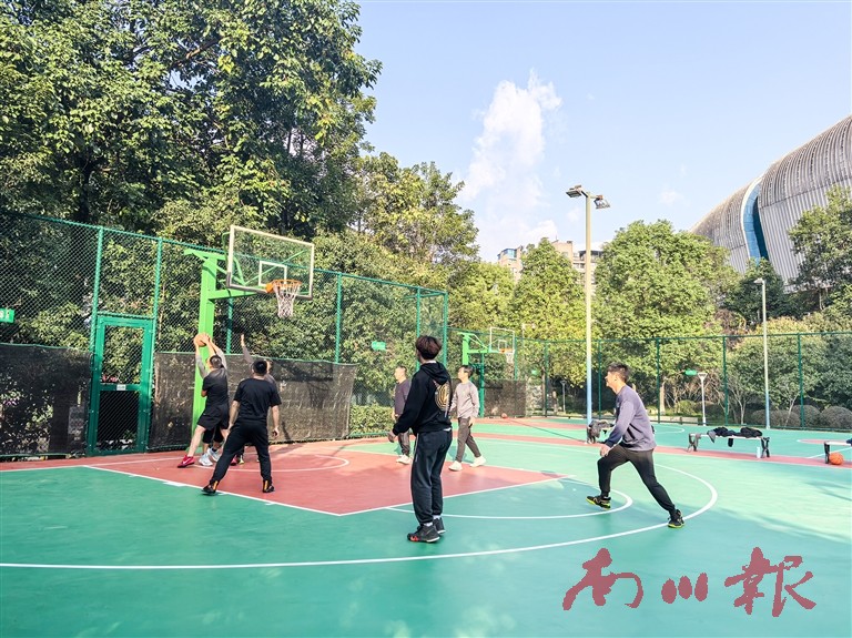 当天下午,记者来到区体育中心室外篮球场,不少健身爱好者正在场地内进行小型篮球赛。