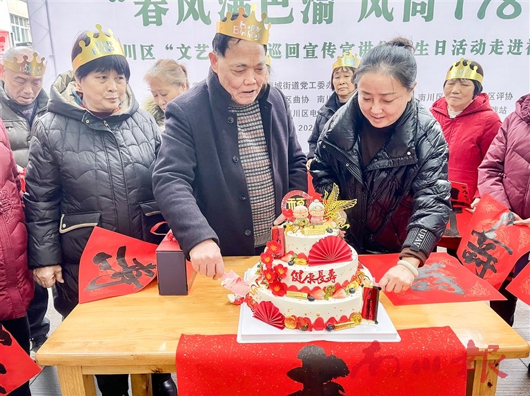 本报讯(见习记者 张朴)12月9日,“春风满巴渝·风尚178”南川区文艺快递巡回宣传宣讲集体生日活动走进南城街道三圣路社区。