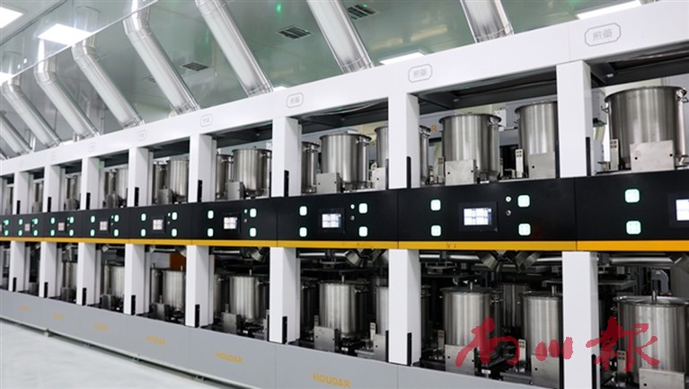 这里有一条全市最大规模、自动化水平最高的中药煎制生产线,每天能处理3000多个处方的中药煎制需求,为市内40多家医疗机构提供代煎服务。而且通过智能AI数据分析系统,还能实现对不同处方药材的浸泡、煎煮时间和温度、加水量等的精确控制。不仅生产线高效运转,企业自主开发的生产信息化管理系统还可以对生产设备的排期、原料和人员的储备、订单的交货时间等进行智能分析,调配出最佳生产方案,实现生产指令“一键下达”。