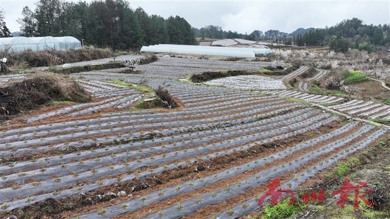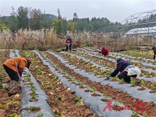 在玉岩铺村,田间地头一派繁忙。劳作人员分工明确,有人专注于耕地起垄,有人则在覆好地膜的土地上戳出空洞,再均匀施加有机肥,紧接着,将辣椒幼苗栽种进地里。