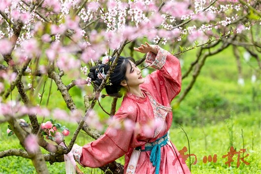 来自中心城区的汉服爱好者袁里和杨建兴奋地说:“这里的桃花太美了,漫山遍野的粉色,仿佛走进了世外桃源,穿着汉服穿梭其中,感觉自己真成了桃花仙子。而且空气特别清新,远离城市喧嚣,太惬意了。”