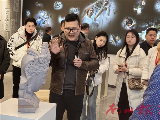 清晨的大足石刻文创园内,非遗传承人苏中明正在雕刻一尊现代风格的石雕摆件。“传统技法不能困在博物馆里,要让年轻人觉得‘酷’。”