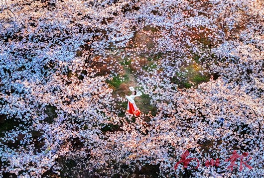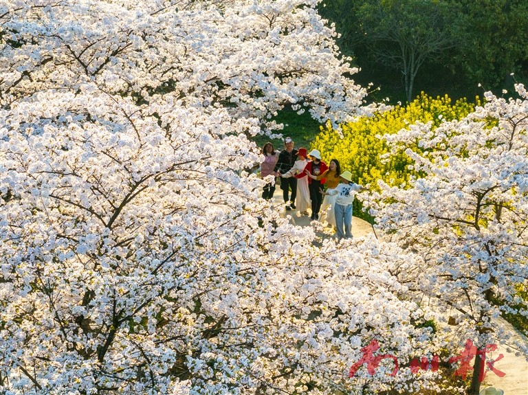 3月26日,春光明媚,木凉镇玉岩铺村数千株樱花绚丽绽放,粉白色的花朵在枝头簇拥,似雪非雪,宛如一片如梦如幻的花海,吸引众多游客前来赏花打卡。