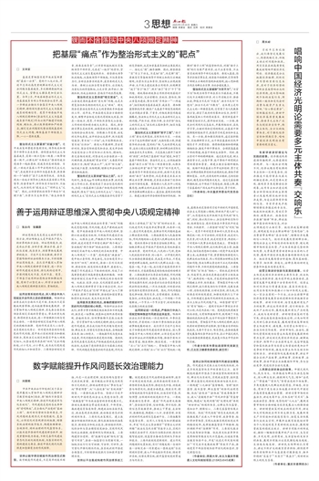 坚持以数字理念赋能作风治理范式转型。数字赋能作风建设,不是简单的技术嫁接,而是一次治理逻辑、制度结构与监督方式的系统重塑。数字赋能必须首先实现思维方式的跃迁,推动治理理念从“事后惩治”向“事前预警”、从“人海巡查”向“系统洞察”转型。一要强化政治导向。坚持以习近平新时代中国特色社会主义思想为指导,将“数据监督”作为政治监督的重要延展方式,推动大数据理念贯通党性教育、干部考核、廉政建设等各类场景,构建政治标准数字表达、政治表现系统捕捉、政治偏差动态识别的闭环体系。二要优化决策模式。建立数据分析辅助判断机制,强化数据指标的抽象能力、联动能力和校正能力,推动组织判断、纪检分析与算法模型深度融合,实现作风风险的主动捕捉、趋势研判与预测决策。三要构建责任逻辑。将“数据可追溯”转化为“监督可问责”,推动一切监督行为有据可循,一切权力运行行为可回溯、可分析、可评价,在可量化中强化刚性约束,在系统识别中推进全面落实,不断增强制度执行力和提升监督精准度。