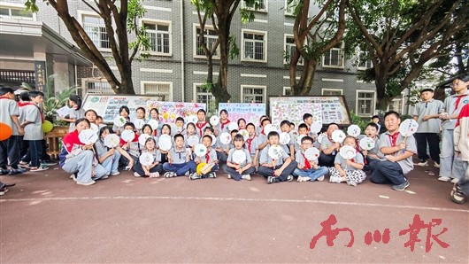 在“童心童画”区域,孩子们用沾满颜料的小手在签到墙上印下色彩斑斓的手印,留下属于自己的独特印记。许愿树上,写满愿望的便签随风摇曳,“我希望期末考满分”“我想学会骑车”……纯真的愿望令人动容。“喜欢自己的一百个理由”分享墙上,孩子们认真写下自己的优点,“我爱笑”“我画画好看”……透过文字显示出的是孩子们的自信与阳光。孩子们还在“放下手机 拥抱生活”主题扇子上尽情创作,绘出心中美好世界。宁江小学学生陈思颖说:“把不敢说的事写在许愿树上,我感到很轻松。”