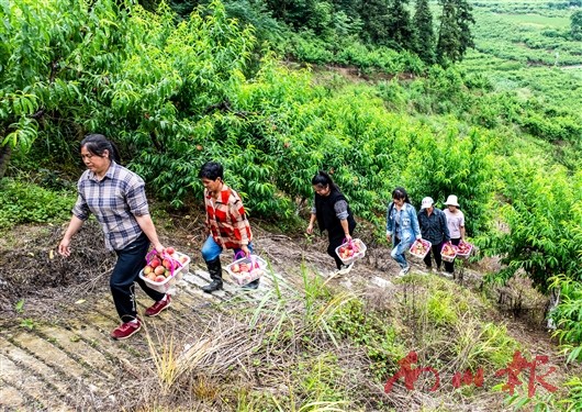 6月4日,白沙镇分水村300亩生态桃园迎来采摘期,绯红饱满的果实缀满树梢,微风拂过,桃香弥漫田间,吸引众多游客体验田园采摘之乐。