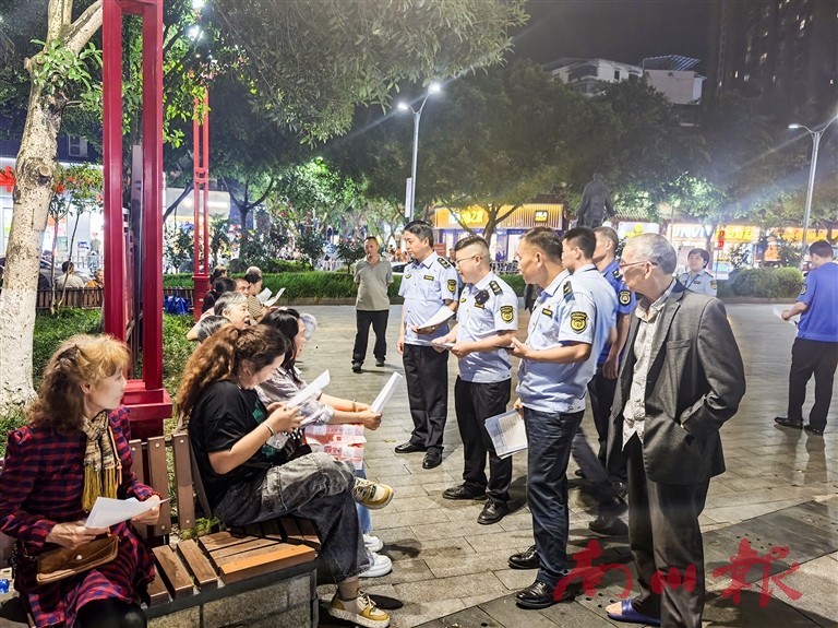 是日晚8点,由多部门组成的三支联合督导组,深入城区商圈、广场、娱乐场所等地开展宣传引导。工作人员向商户和市民发放宣传资料,细致讲解中高考期间环境噪声管理规定。城区一娱乐场所负责人表示,他们已第一时间张贴宣传海报,并缩短营业时间,将公区音乐音量降至最低,全力支持考生备考。爱在鼓楼广场跳坝坝舞的市民王丽娜也积极响应:“我们团队从昨天起就暂停了活动,我还主动向身边舞友宣传,大家都愿意为考生让出安静空间。”