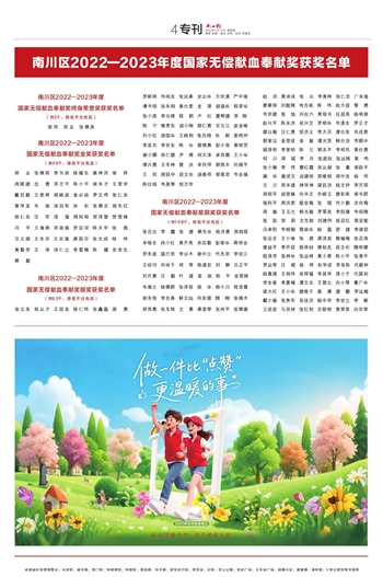 南川区2022-2023年度国家无偿献血奉献奖获奖名单