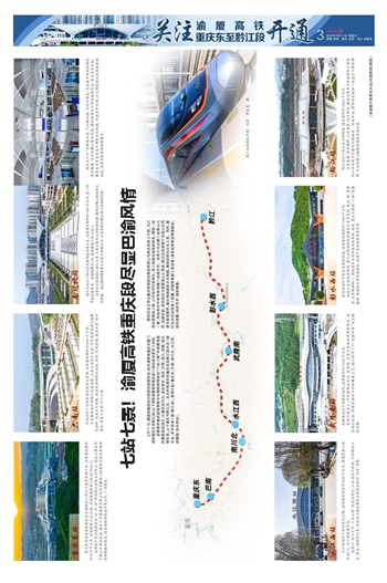 渝厦高铁重庆段是国家中长期铁路网规划“八纵八横”中渝厦通道的重要组成部分,从重庆站引出,途经渝中、南岸、巴南、南川、武隆、彭水等区县,止于重庆市黔江区。此次即将通车的重庆东至黔江段共设7座车站,其中改建1座(黔江站)、新建6座(重庆东、巴南、南川北、水江西、武隆南、彭水西站)。