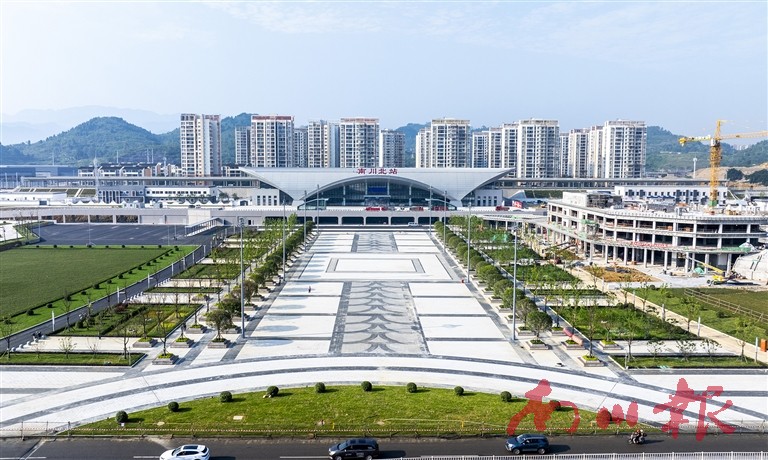 据项目业主单位重庆铁路投资集团有限公司相关负责人介绍,为打造站房精品工程,公司会同代建单位,深入挖掘当地地标特色,围绕一站一景,将站房内外装饰装修融入地域文化。如南川北站融入金佛山山形、杜鹃花韵,依托弧形元素展现山之秀美;黔江站灵感源于当地山水风景与景观廊桥,融合地域建筑文化精髓,展现自然与文化之美。同时,紧盯站台及站房施工质量,积极探索新工装设备,推进站房建设畅通融合、绿色温馨、经济艺术、智能便捷。