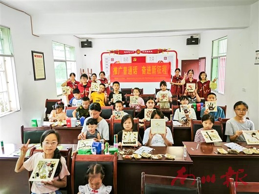 次日,金狮村儿童课堂充满欢声笑语,用药安全实验、中药标本画创作让孩子们触摸传统文化,垃圾分类游戏播撒环保种子,集体诵读《儿童识药三字经》的琅琅书声,将普通话推广与中医药启蒙巧妙融合。