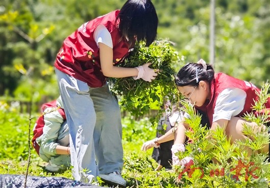 随后,志愿者走进金佛山珍稀植物园,在技术人员李直堃引导下探秘特色药材,在园区指定区域进行除草等义务劳动,体验药农的辛劳。