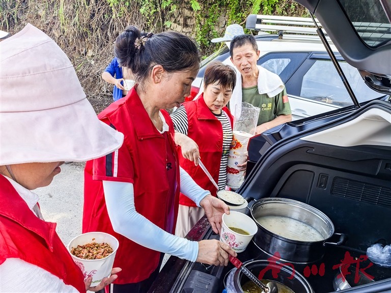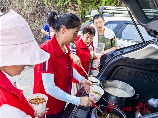 太阳越升越高,工地上的吆喝声、工具碰撞声混着远处蝉鸣,格外热闹。杨贵梅和姐妹们端着刚熬好的绿豆稀饭走来,递到每个人手里。一碗稀饭下肚,凉丝丝、甜津津的,赵弟军抹了把汗,笑着说:“这路修宽了,以后咱卢家湾的日子,肯定跟这路一样,越走越敞亮!”(下转第三版)  (上接第一版)