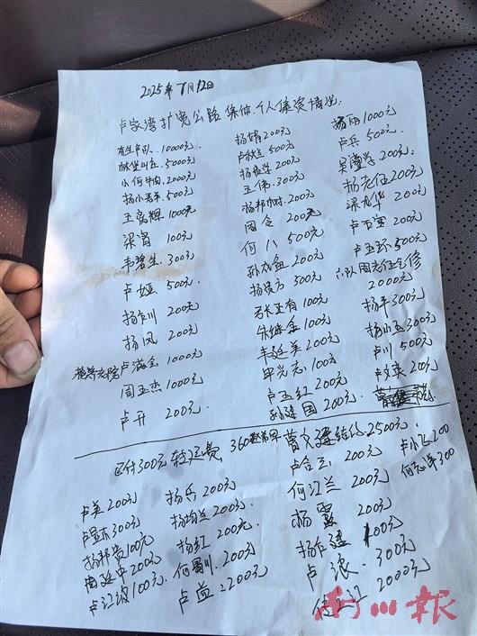 其实,这不是卢家湾人第一次这么齐心。之前杨邦文妻子生病,大伙凑了两万多元;卢显松妻子生病,又是两万多元。这次修路剩下的钱,也会存入林堡社区3、4组股份经济合作社账户,留着以后给大伙办更多实事。