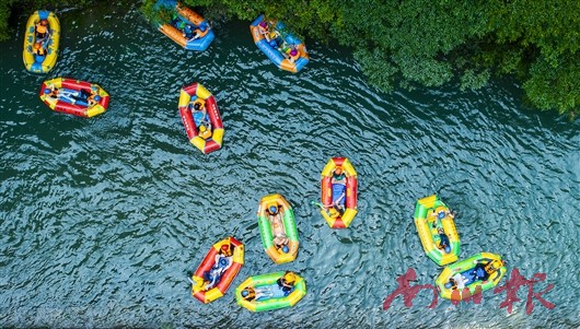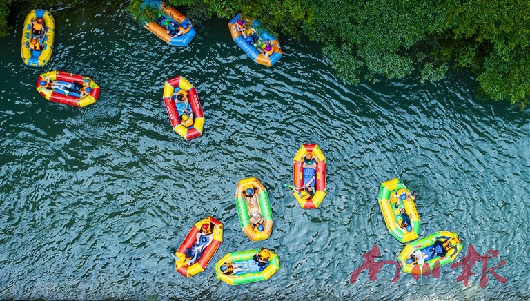 7月18日,神龙峡景区,游客乘皮划艇在清澈泉水中飞驰而下,水花四溅驱散酷暑。夏日炎炎,峡谷内泉水因温度仅20℃左右,成为市民避暑“天然冰箱”。这条总落差80米的泉水漂流道,以沁凉山泉和惊险弯道吸引游客,日均接待量超千人。记者 甘昊旻 摄
