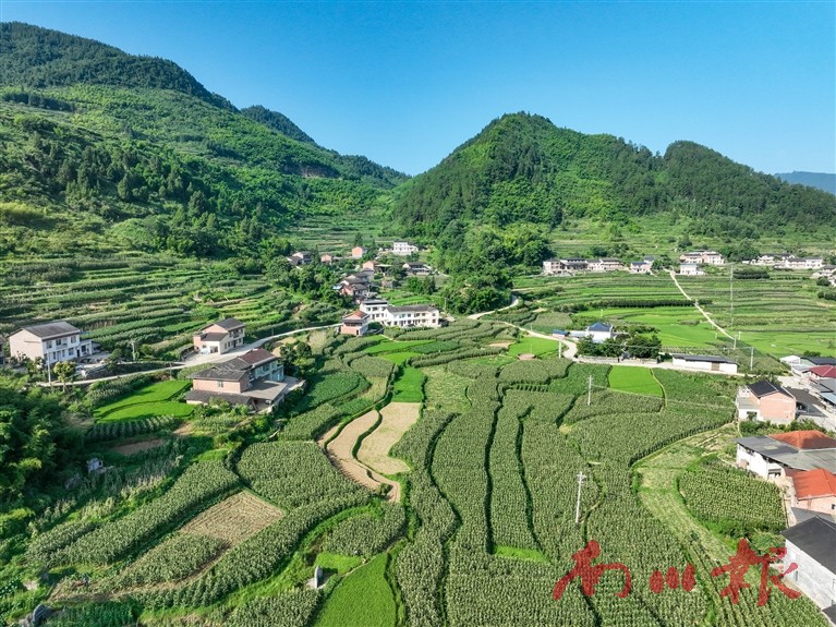 “今年玉米长得好,每亩能收一千五六百斤。”南城街道双河场村种植户邓龙书望着自家地里沉甸甸的玉米穗,脸上满是笑意。这份丰收的底气,源自当地得天独厚的自然条件:高海拔地区昼夜温差大、光照充足,加之山泉水灌溉,使得这里的高山糯玉米积累了更丰富的营养,不仅口感出众,更因远离污染的生态种植模式,成为市场的“香饽饽”。如今,成片的玉米田如绿毯铺展山间,饱满的果穗压弯枝头。每天凌晨,这些带着山风气息的玉米便通过冷链车运往中心城区各大市场,为农户增添新收益。