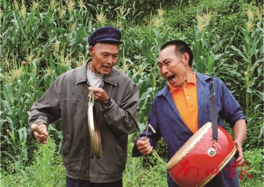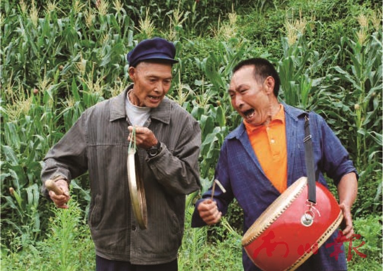 “金佛山打闹”是流传在金佛山地区的一种古老民间艺术,又被称为“薅草打闹歌”。顾名思义,就是老百姓在薅草、薅秧时节劳作时演唱的歌曲。后来,老百姓在生活和民俗活动中,或者过年过节时,也会敲锣打鼓演唱“打闹歌”,其形式也从传统说唱演变为舞蹈、人物剧等。
