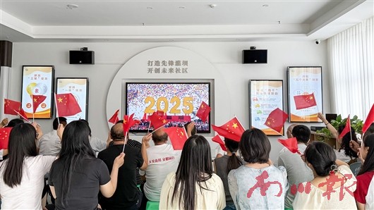 上午9时许,电视里传来雄壮的国歌声,全体人员肃然起立,齐声跟唱国歌,嘹亮的歌声在大厅回荡。“每次参加这样的活动,我的心情都无比激动,这是对历史的深情铭记,更是对未来的奋进激励。”社区工作人员吴灵鑫难掩激动,眼眶微微泛红,“作为中国人,我感到无比骄傲和自豪!”