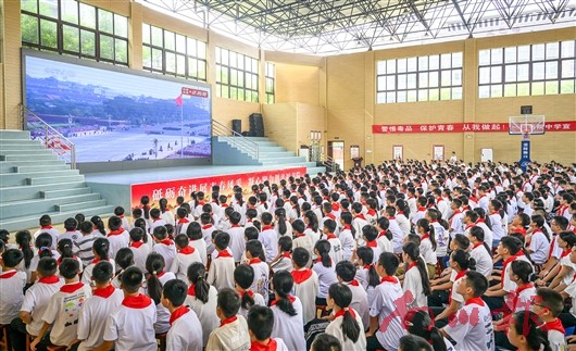 9月3日,南川中学组织师生收看大会直播,在庄严肃穆的氛围中缅怀历史、致敬英雄。