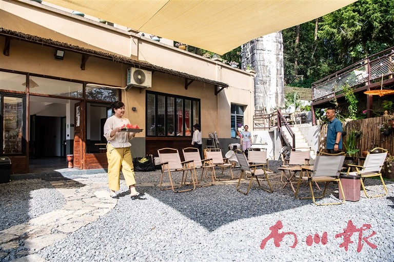 在大有镇水源村桥边小院民宿,工作人员在为游客做服务工作。资料图片