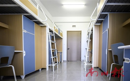重庆工业职业技术大学南川校区宿舍分为4人间和6人间,均采用上床下桌的经典布局,为每位同学提供了独立的学习和生活空间,宿舍内空调、储物柜、独立卫浴等设施一应俱全。特别值得一提的是,每栋楼都配备了智能饮水系统和共享洗衣房,极大地方便了学生的日常生活。宿舍楼外,绿化景观错落有致,为同学们提供了良好的休憩环境。