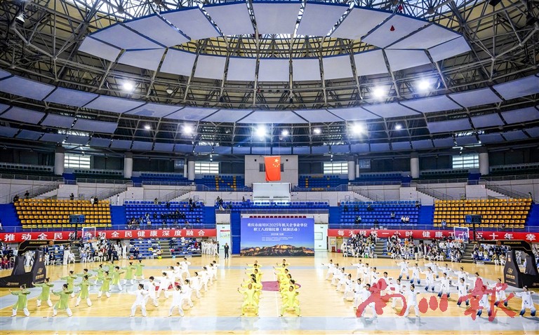 10月23日,南川区2025年机关企事业单位职工八段锦比赛在区体育馆举行。全区30家单位的职工代表同场竞技,展现传统健身功法的独特魅力。