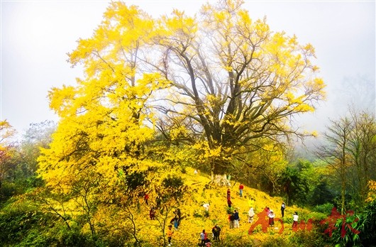 银杏村浸着古朴。这藏在深山里的古村落,竟聚集了上千株野生古木。最动人的,要数“古银杏客栈”外那三棵千年古树了。最大的一棵,需三四人合抱,虬枝盘曲,撑开漫天金叶。阳光从叶隙漏下,在地上洒满跃动的光斑。虽避不开喧嚷的游人,但顺着小径往林子深处走,总能寻得片刻安宁。看那剥了壳的银杏果莹白如玉,听村民用乡音叫卖,这季节的丰饶,便在这人间烟火里了。