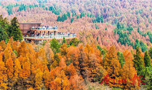 山王坪的景致堪称“一半是秋,一半是春”的奇观。一条公路悠然穿过林海,竟将风光一分为二。左侧的水杉林是泼洒开的金黄,每一株都像燃烧的火炬,璀璨得教人不敢直视;右侧的柳杉却固执地守着苍翠,蓊蓊郁郁的,恍如春天在此停驻了脚步。登高远眺,这泾渭分明的暖色与翠色便尽收眼底了。风过处,黄叶簌簌,绿叶沙沙,仿佛天地在低语。偶尔有薄雾漫起,整片山林便成了仙境,那朦胧中的色彩愈发显得不真切,像是梦里的光景。