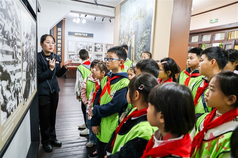 11月16日,区委宣传部、团区委、区青少年宫组织我区40余名少先队员在重庆抗战遗址博物馆开展“传承红色血脉·赓续抗战精神”主题研学活动。学生们参观了孔园、云岫楼等旧址,通过观看锈迹斑斑的文物、听取讲解员的深情讲解,感受抗战时期的艰辛历程。